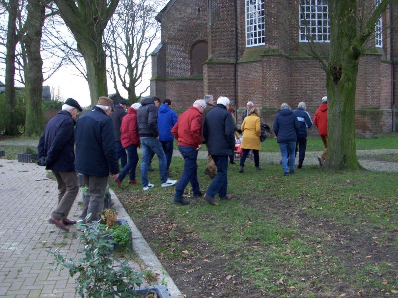 Ruim 25 vrijwilligers waren aanwezig bij de nieuwjaarsreceptie van de HVS. Na elkaar het beste voor 2020 te hebben toegewenst, was er koffie en cake en een praatje van voorzitter Bertus Rietberg. Daarna kreeg het gezelschap een rondleiding door Steenderen, waarbij de toekomstige Fototegelroute werd gevolgd en Bertus op diverse plekken uitleg gaf. Terug bij de 'Steenuil' was er gelegenheid om onder het genot van een hapje en een drankje gezellig bij te praten.