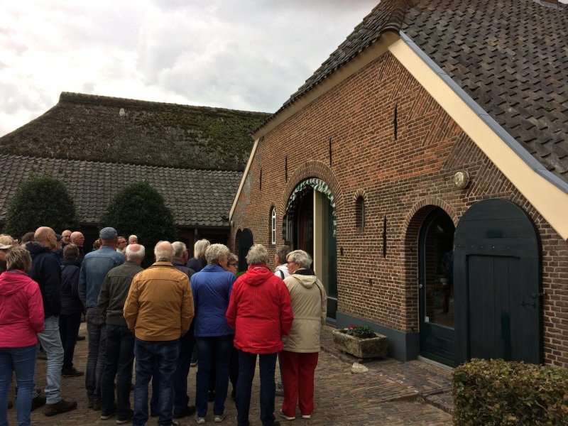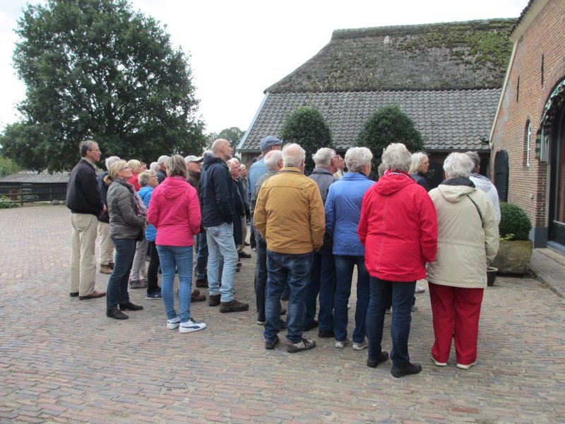 Tijdens de gezellige ontvangst in ons archiefgebouw legde Dikkie Garritsen aan de deelnemers uit hoe de middag zou gaan verlopen. Na een bakje koffie of thee vertrok het gezelschap naar de eerste locatie bij de familie Winkel, waar Wim Jansen al stond te popelen om uitleg te geven over de bouwstijl en andere details van de boerderij. Daarna ging het verder met een bezichtiging van de boerderij van mevrouw Massink en de tocht werdt beëindigd bij de boerderij van Arend Jan Breukink, in de Emmer gelegen.
