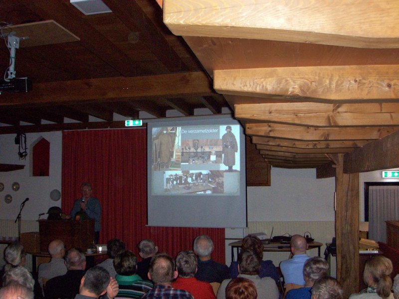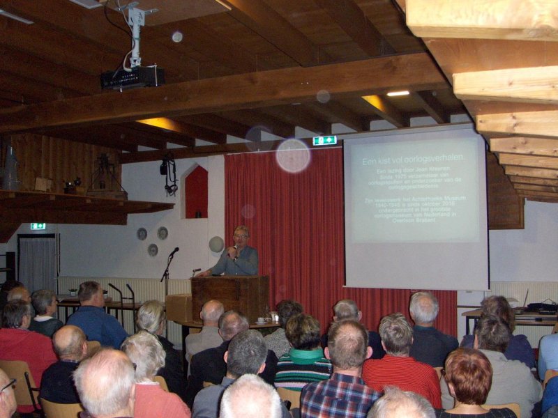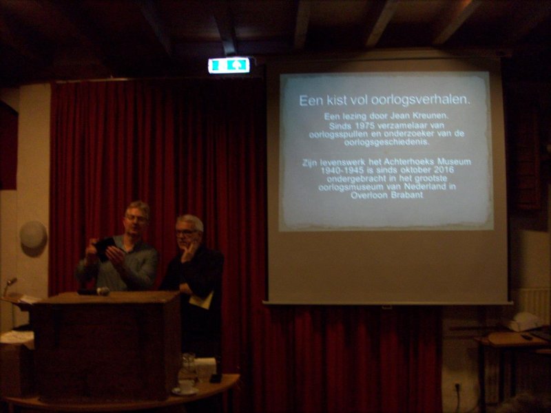 Voor een afgeladen volle zaal 'Het Anker' in Steenderen vertelde Jean Kreunen uit Hengelo (Gld) het verhaal over zijn oorlogsverzameling, die begon op een zolderkamertje, werd ontplooit in het 'Achterhoeks Museum 1940-1945' en vandaag de dag is te bezichtigen in het Oorlogsmuseum in Overloon Brabant. Maar het ging niet om de verzameling alleen deze avond, destemeer ging het om de verhalen die bij de gevonden attributen horen.