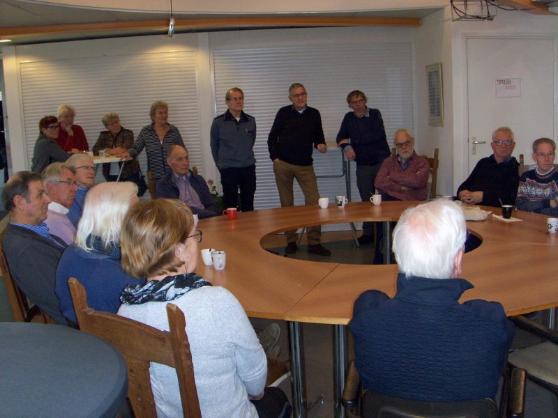 Ruim 25 vrijwilligers waren aanwezig bij de nieuwjaarsreceptie van de HVS. Na elkaar het beste voor 2020 te hebben toegewenst, was er koffie en cake en een praatje van voorzitter Bertus Rietberg. Daarna kreeg het gezelschap een rondleiding door Steenderen, waarbij de toekomstige Fototegelroute werd gevolgd en Bertus op diverse plekken uitleg gaf. Terug bij de 'Steenuil' was er gelegenheid om onder het genot van een hapje en een drankje gezellig bij te praten.